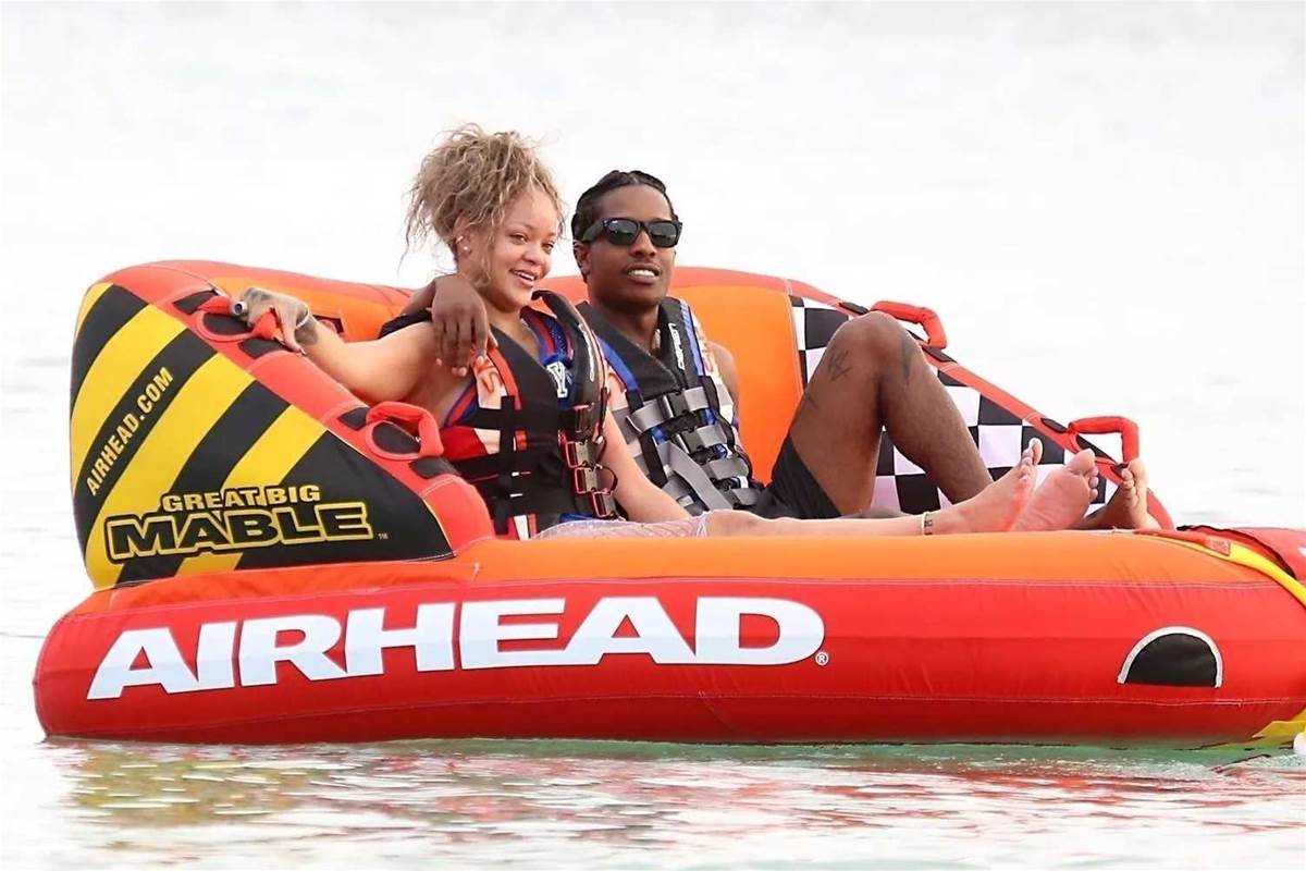 On August 6th, a Tuesday that will be remembered by their fans, Rihanna and A$AP Rocky were spotted enjoying a leisurely day at the beach in Barbados. The couple, famous for their glamorous lives and electrifying music careers, seemed to revel in this peaceful escape in A$AP Rocky's homeland. The soothing sound of the waves and the warm, tropical breeze provided a perfect backdrop for their idyllic outing. Dressed in vibrant life jackets, the pair lounged together on an eye-catching orange inflatable raft, their smiles and laughter a testament to their joy and relaxation.
