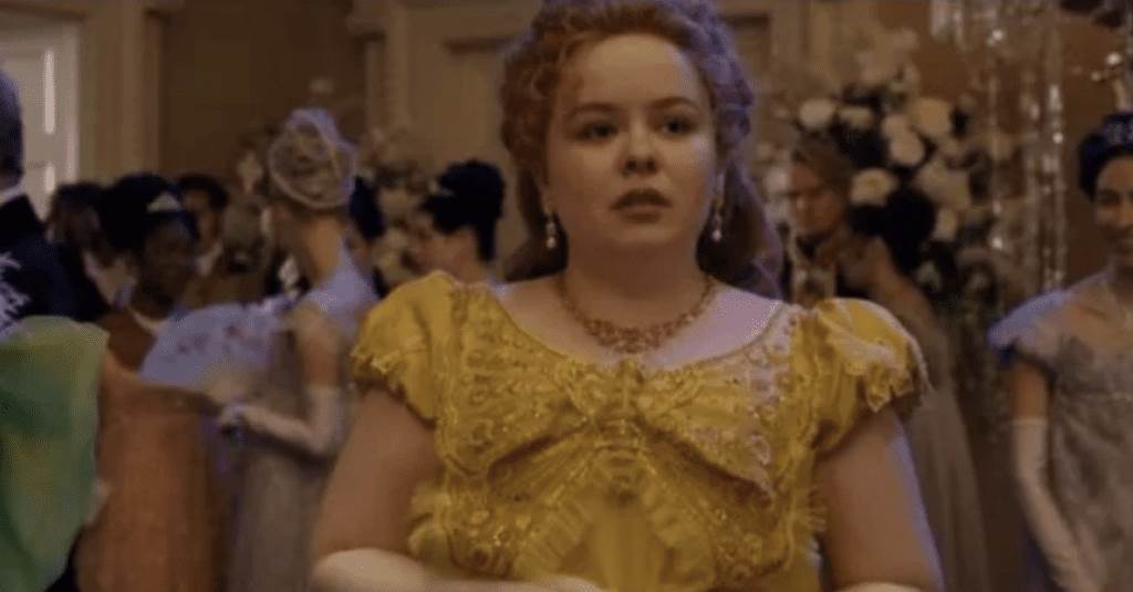 So you know that whole scene in the final ball in episode four when they have the dancers? Well, on the floor in that scene is a big painting of Eros and Psyche from Greek mythology. Why are Eros and Psyche significant? Well, Eros AKA Cupid is assigned to find Psyche a husband, sounds like Colin and Penelope right? Just wait.So, Eros accidentally shoots himself with an arrow and falls in love with Psyche, just as Colin is in love with Penelope! Psyche also has two sisters (Like Pen), and Venus (we know from Queen Charlotte that the Queen is associated with Venus) is incredibly jealous of Psyche, just like Queen Charlotte is jealous of Lady Whistledown.