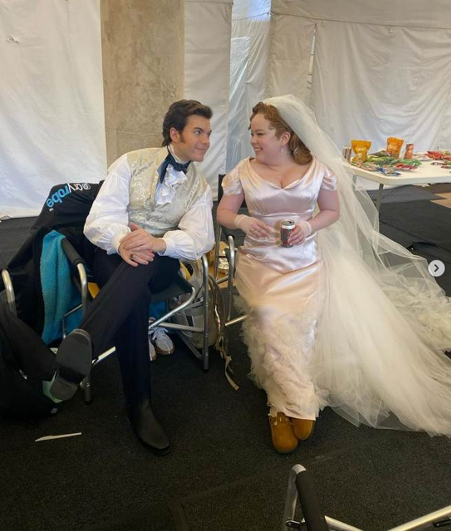 Since the latest batch of episodes began streaming last month, fans have been loving the cast’s behind-the-scenes glimpses at what goes on while making Bridgerton, whether it’s group dance-offs in full costume or Nicola playing a brilliant prank on her on-screen beau thanks to his oft-forgotten boyband past.